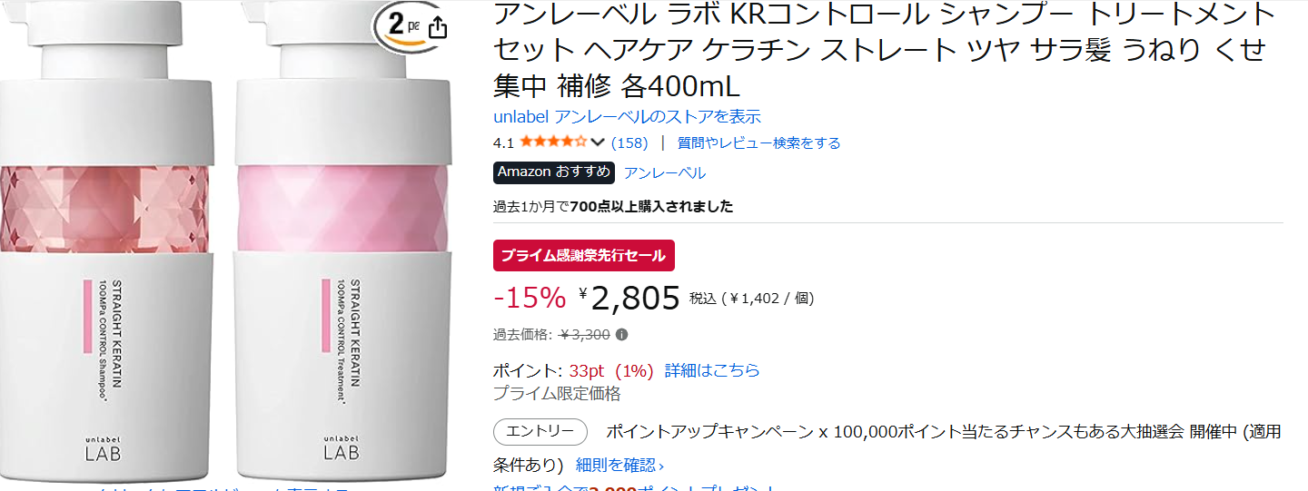 Amazon | アンレーベル ラボ KRコントロール シャンプー トリートメント セット ヘアケア ケラチン ストレート ツヤ サラ髪 うねり くせ 集中 補修 各400mL | unlabel アンレーベル | シャンプー・コンディショナーセット 通販